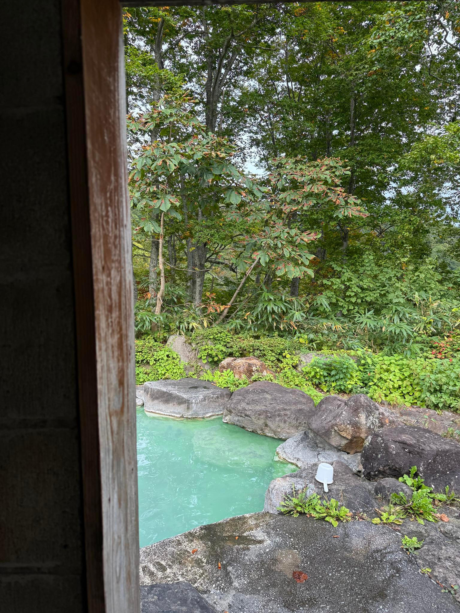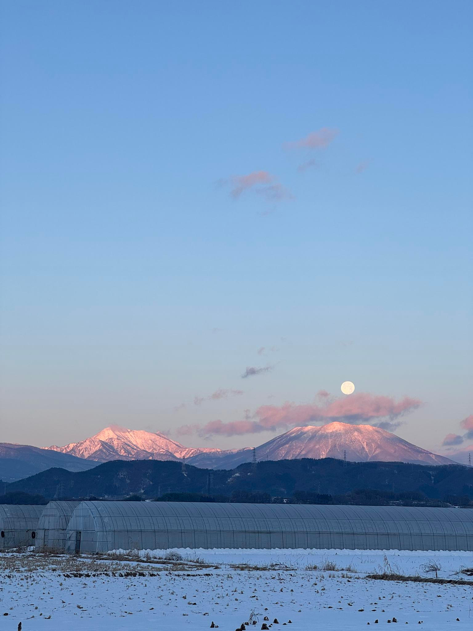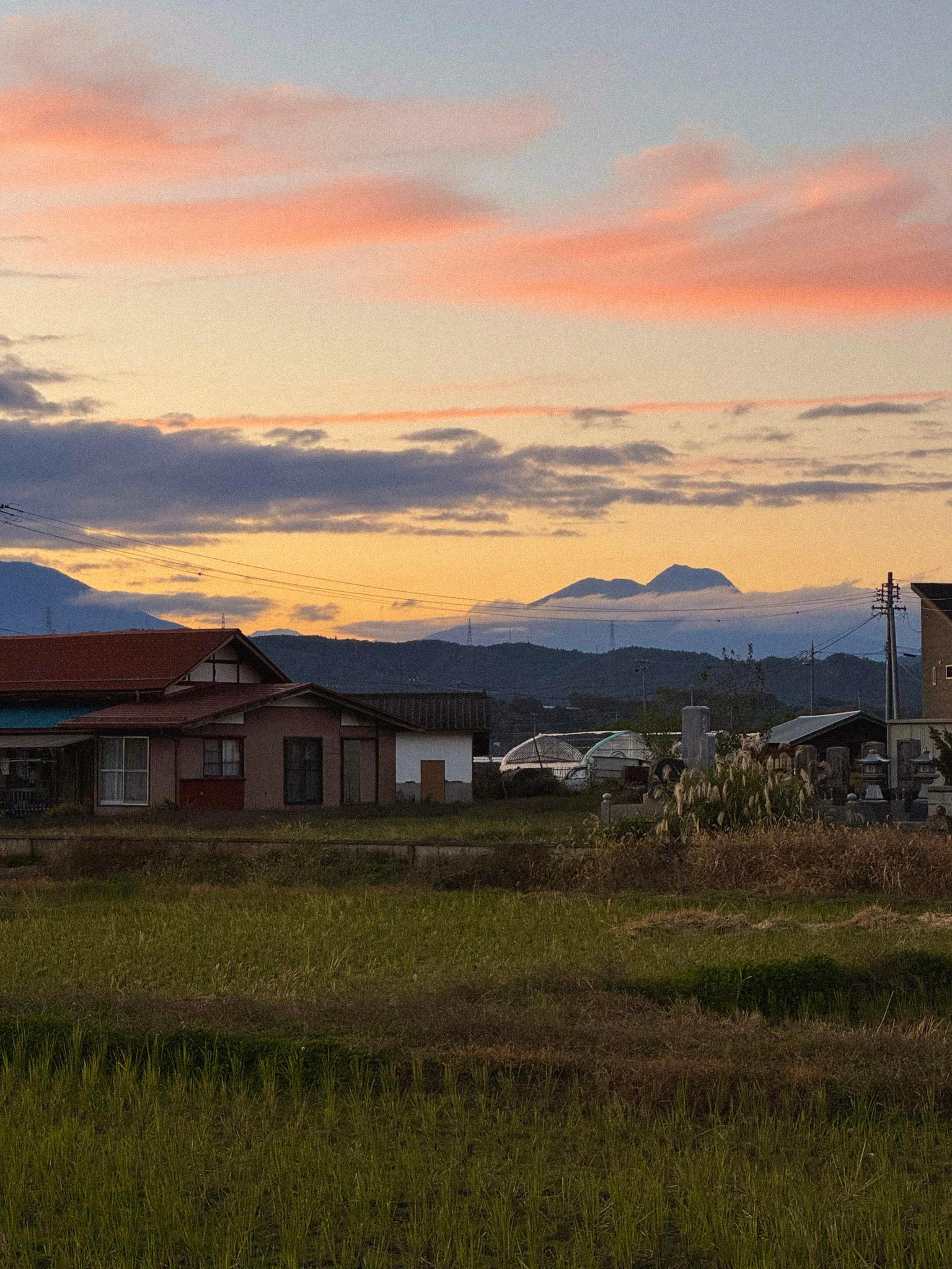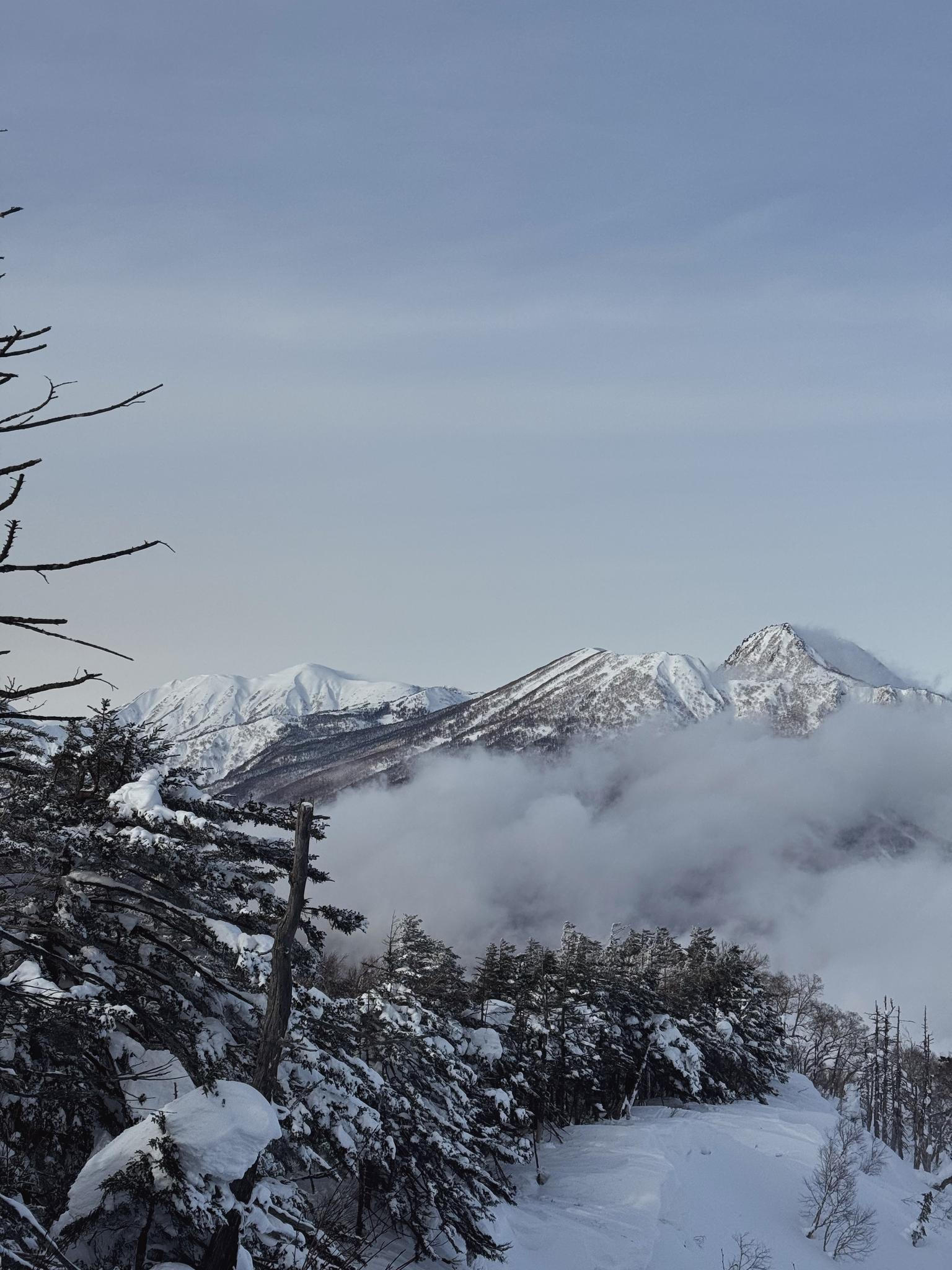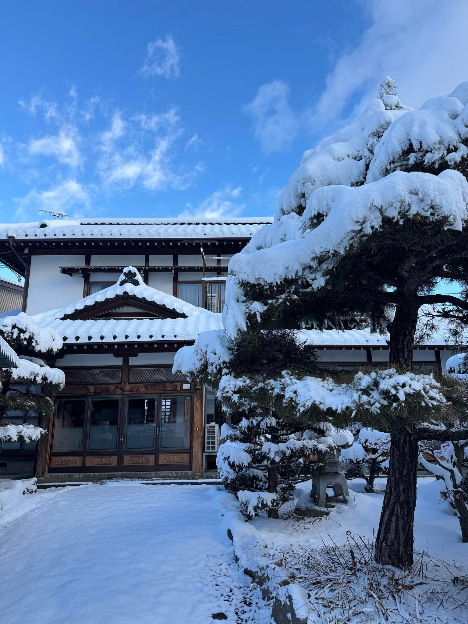 Z okna se dá pohodlně dohlédnout na vrcholky japonských Alp, které – na rozdíl od těch evropských – na první pohled nouzí o sníh netrpí.
