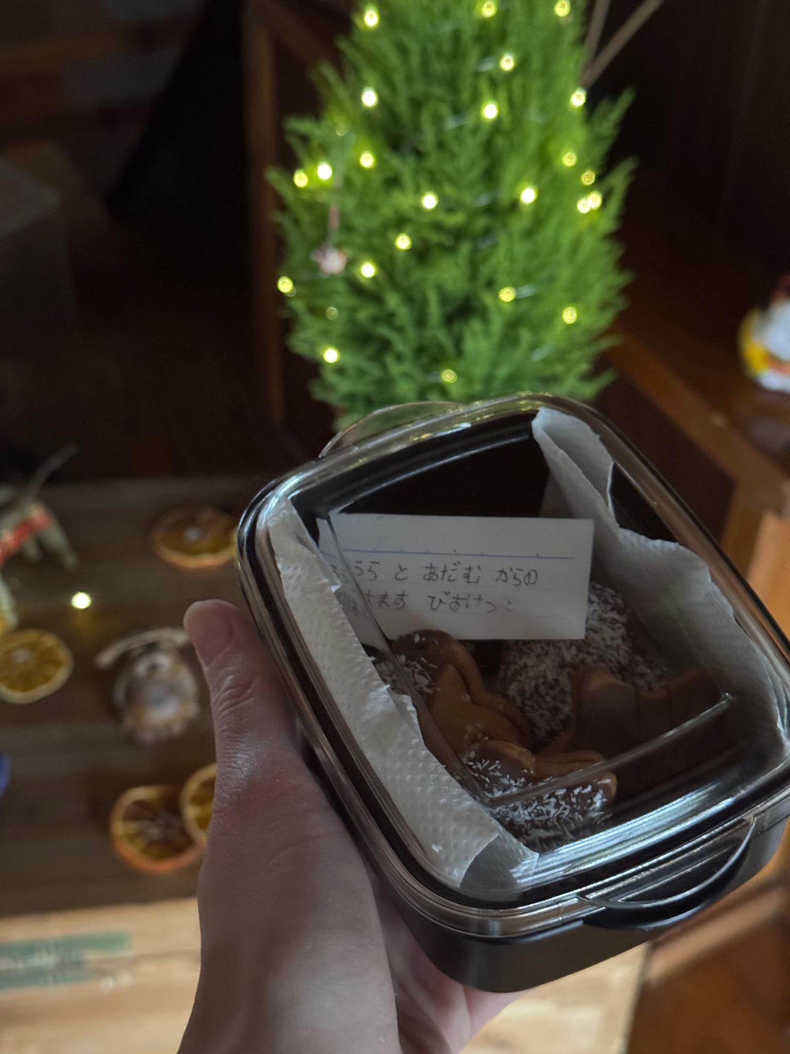 „Paní sousedka neumí anglicky a naše japonština nestačí na běžnou konverzaci. Tak jsem se naučila aspoň základní hiraganu a nechávali jsme jí vzkazy: ‚Vánoční sušenky od Laury a Adama‘ a podobně.