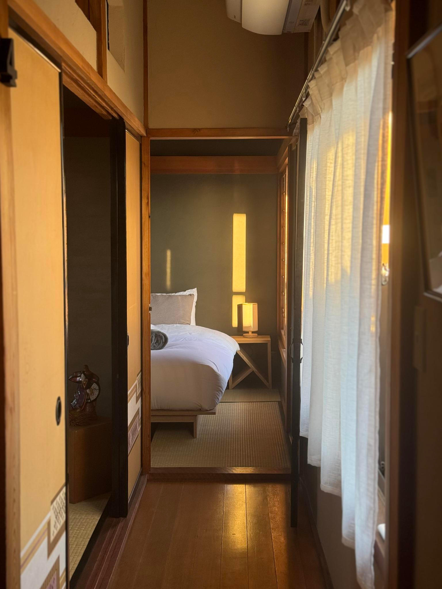 „Nemuseli jsme nic zásadního bourat, jen kuchyň šla úplně pryč,“ doplňuje Laura. Čekaly je tak spíš drobnější úpravy: opravovali japonské omítky shikkui, brousili a olejovali dřevo, zachovali původní tatami i nábytek.