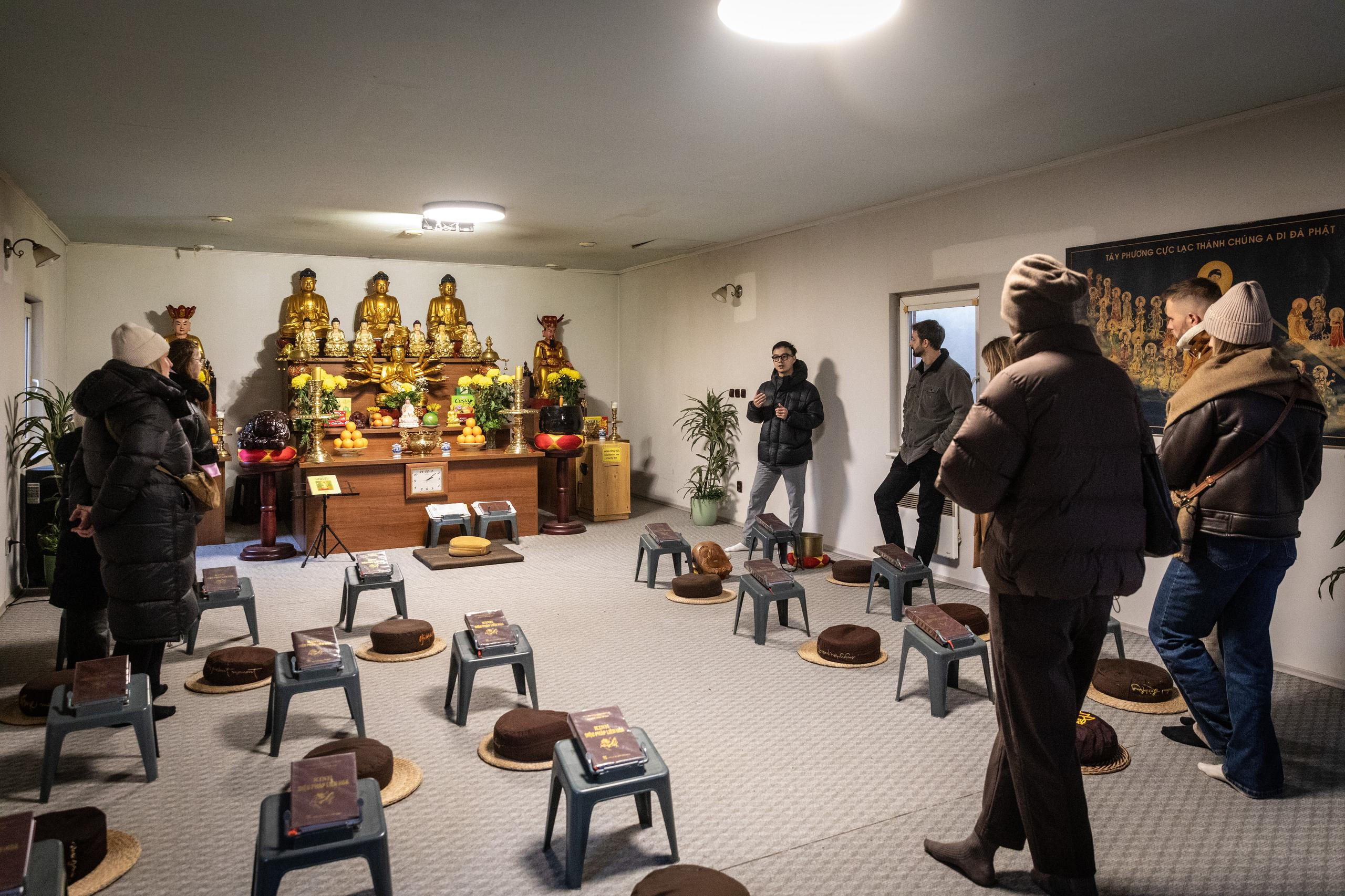 „Po Praze najdeme asi další tři chrámy, ale nejsou postavené jako chrámy. Jsou to rodinné domy, které jsou uvnitř upravené pro náboženské účely,“ zaznívá během prohlídky. Tento chrám tak podle našeho průvodce může být jediným chrámem jako takovým v Praze.