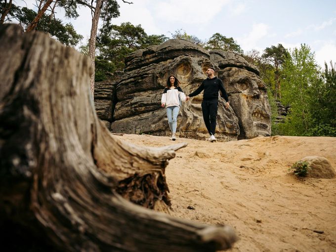 Asi devět metrů vysoké skalní reliéfy vyobrazující dvě lehce děsivé čertovy hlavy jsou dílem sochaře Václava Levého a pochází z poloviny 19. století. Vydejte se k nim po modré turistické značce od obecního úřadu v Želízech.